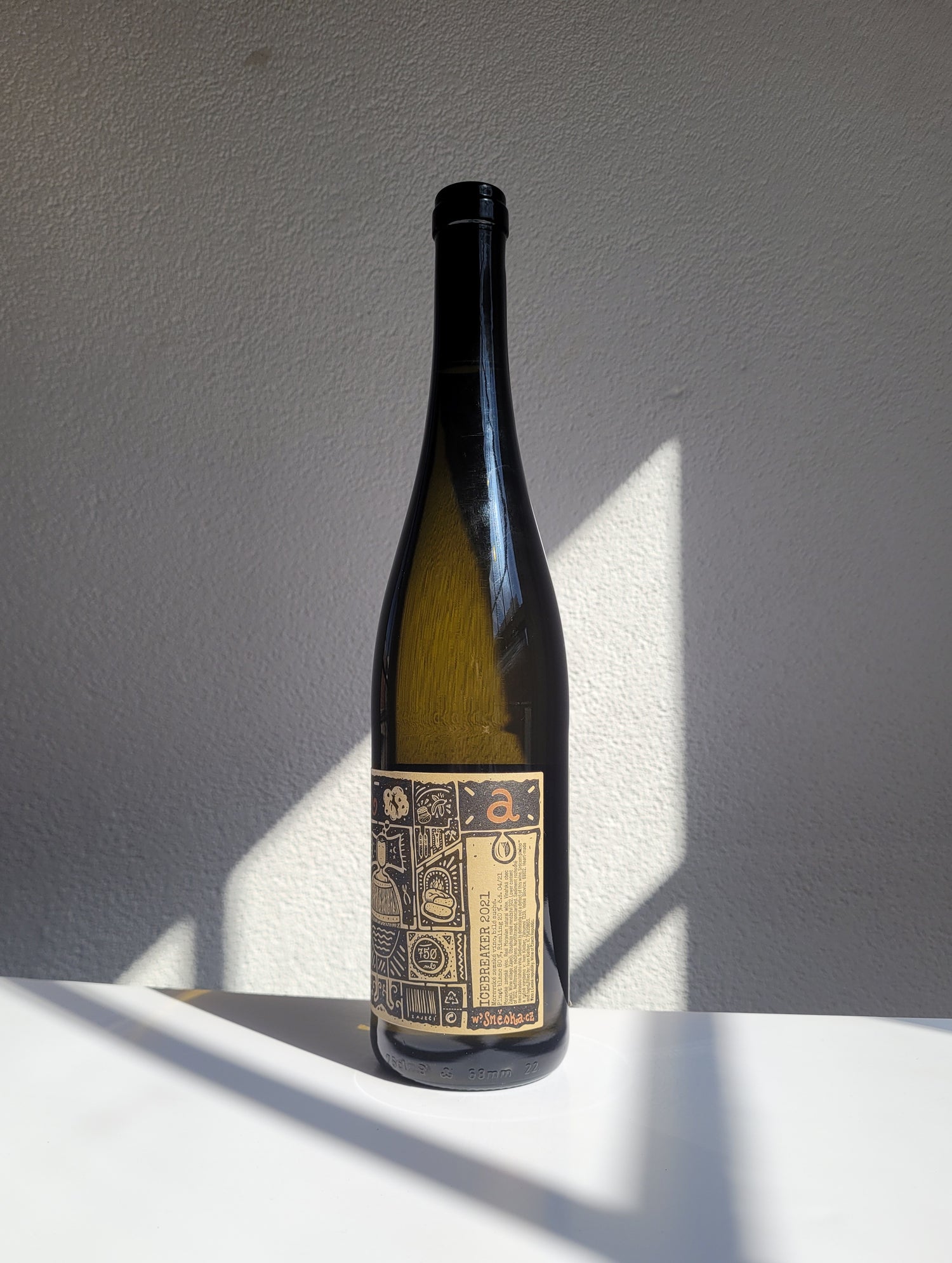 Fresh cuvée Pinot Blanc (80%), which gives the wine a distinctly full body, and Riesling (20%), which enlivens it with excellent acidity and actually dominates the wine's aroma as well. Expect notes of lemongrass, green tea and apples. In the taste, again, peach juiciness with herbal sorrel acidity. This wine really brought us to our knees this year. Unfiltered, unfined. Alc. 13 %